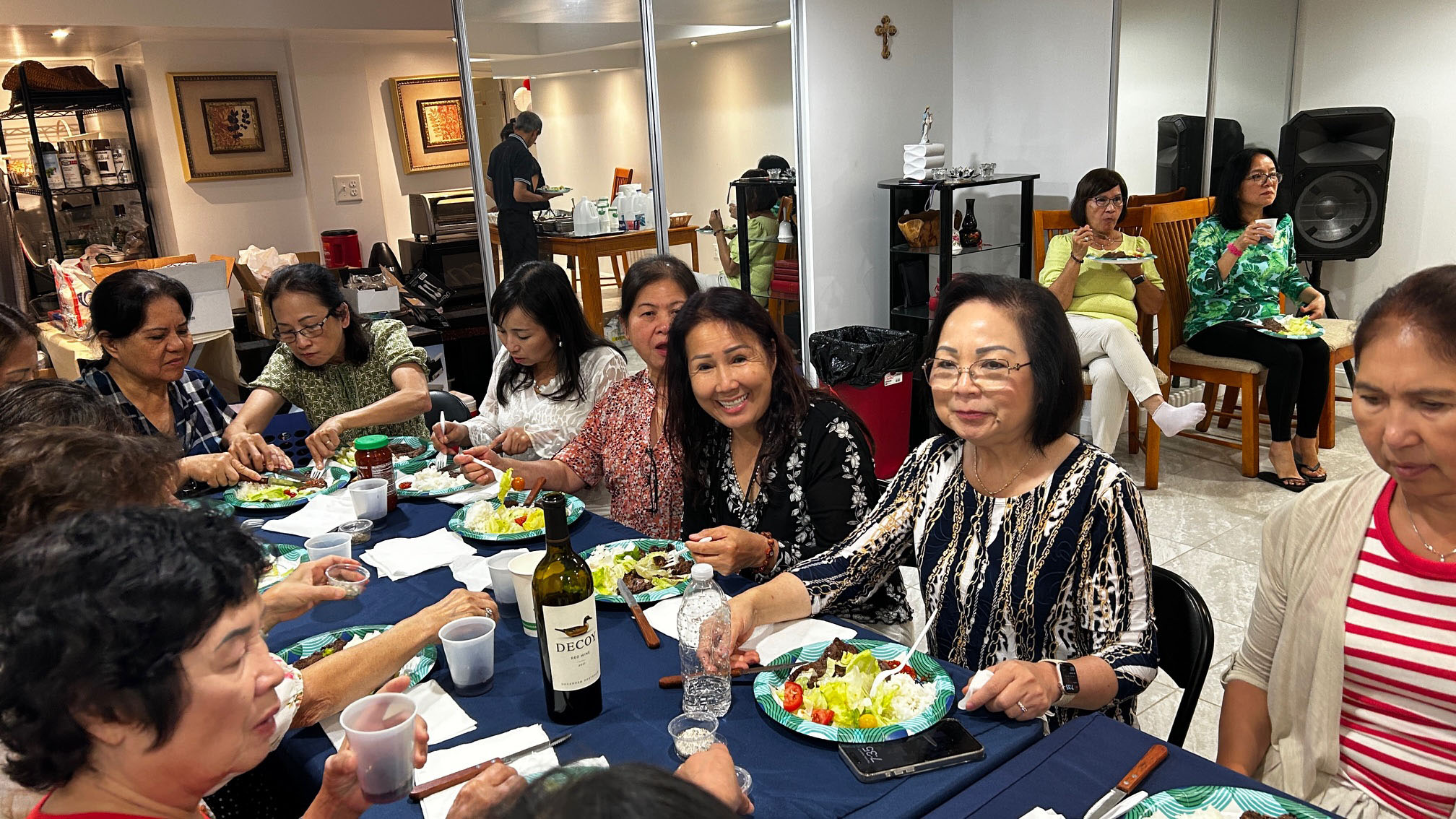 Buổi chiều hôm ấy nhiều người có dịp dạo quanh khuôn viên thật rộng của nhà anh chị Thông & Diệu Tú – với gần 2.5 acres, có hồ nước để chèo thuyền, có khu rừng đằng sau với những đường mòn bao quanh ngôi nhà có 10 phòng ngủ và một phòng hội họp cho khoảng 30 người! Thật lý tưởng cho phái đoàn hành hương.