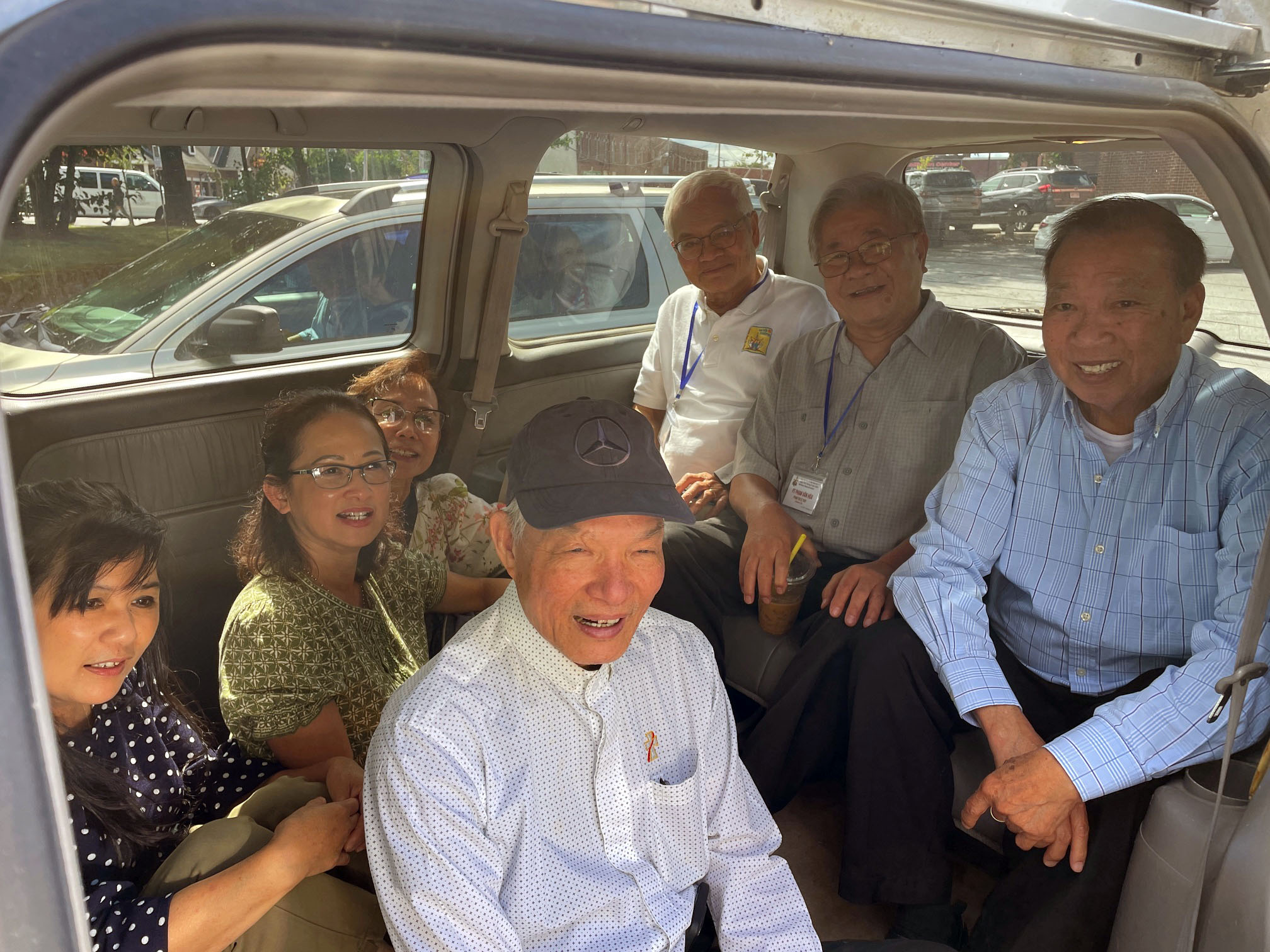 Xe đi thì đủ chỗ, nhưng xe về lại thiếu nên một vài anh chị phải ngồi trên sàn xe minivan như ngày xưa khi di tản.